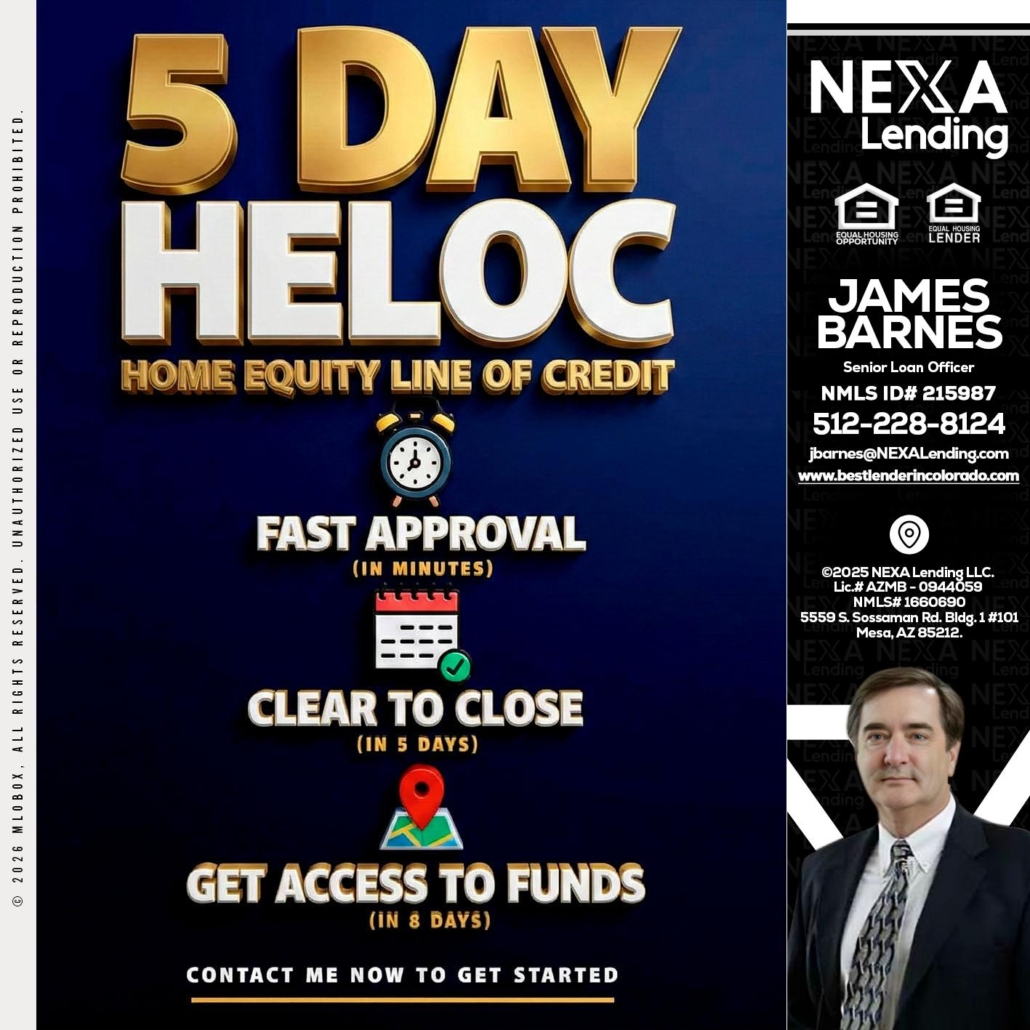 Hi, my name is James Barnes. I’m a Loan Officer with NEXA Lending LLC., offering personalized mortgage solutions, fast customized quotes, great rates and service with integrity.