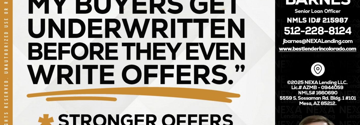 Hi, my name is James Barnes. I’m a Loan Officer with NEXA Lending LLC., offering personalized mortgage solutions, fast customized quotes, great rates and service with integrity.