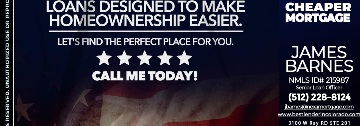 Hi, my name is James Barnes. I’m a Loan Officer with NEXA Mortgage LLC., offering personalized mortgage solutions, fast customized quotes, great rates and service with integrity.