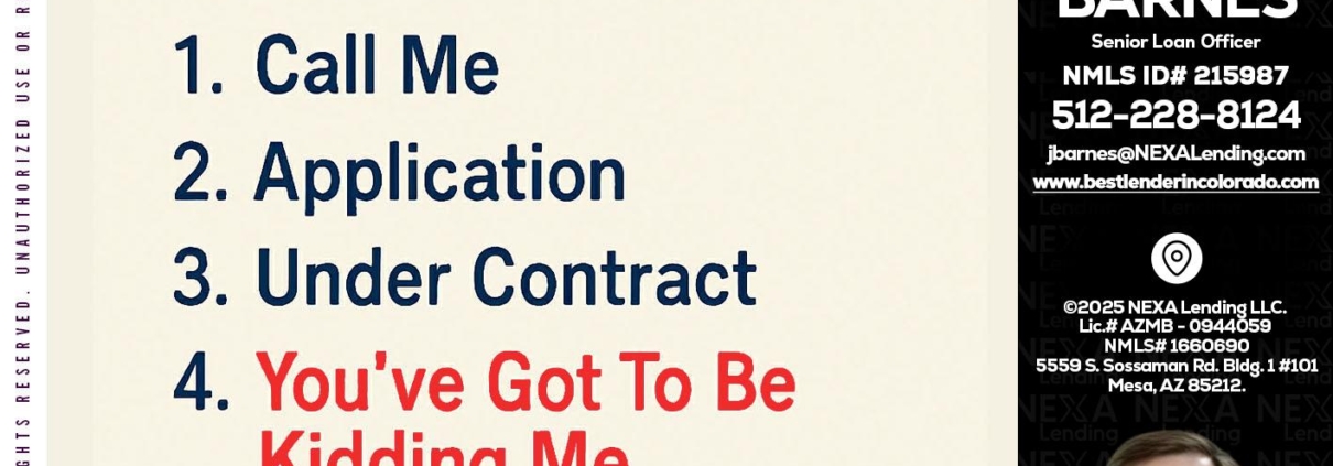 Hi, my name is James Barnes. I’m a Loan Officer with NEXA Lending LLC., offering personalized mortgage solutions, fast customized quotes, great rates and service with integrity.