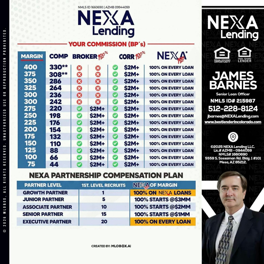Hi, my name is James Barnes. I’m a Loan Officer with NEXA Lending LLC., offering personalized mortgage solutions, fast customized quotes, great rates and service with integrity.