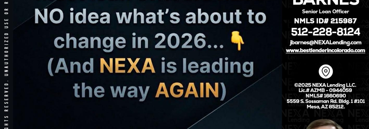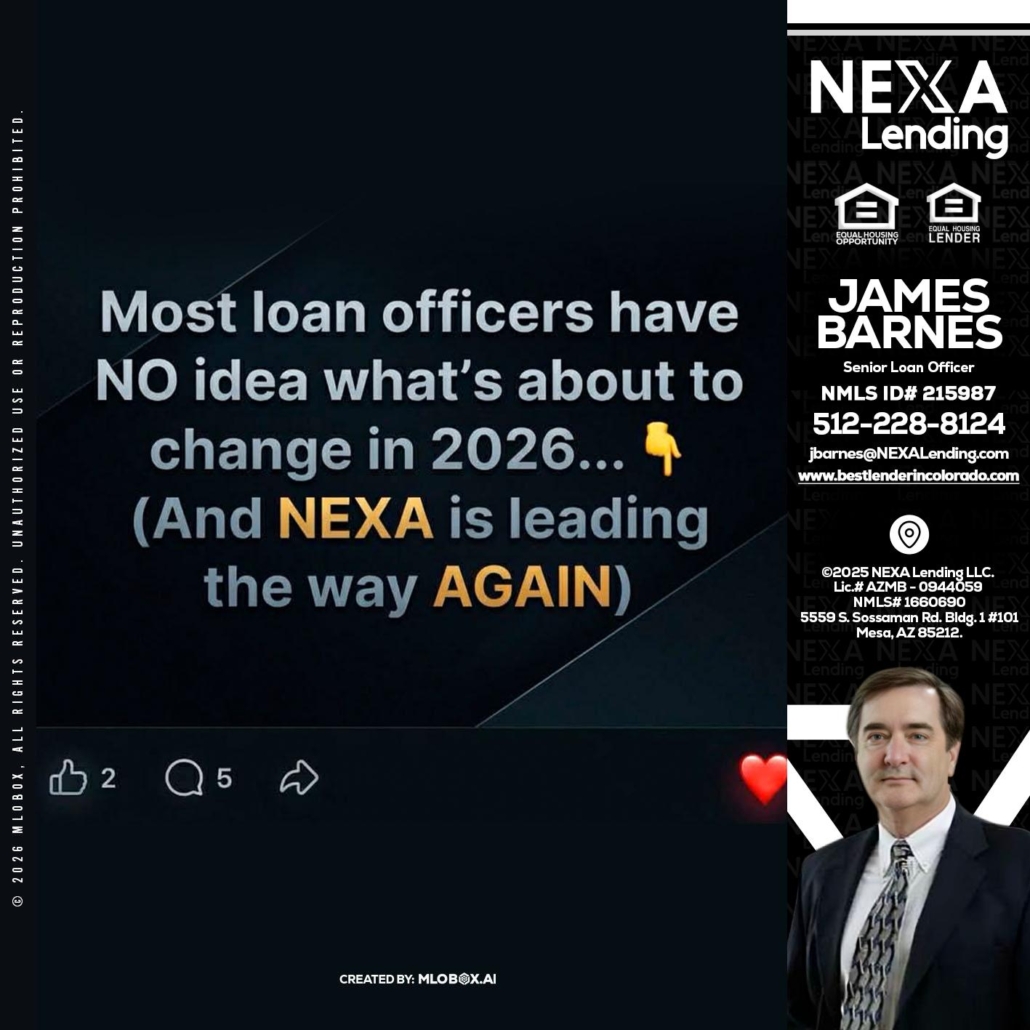 Hi, my name is James Barnes. I’m a Loan Officer with NEXA Lending LLC., offering personalized mortgage solutions, fast customized quotes, great rates and service with integrity.