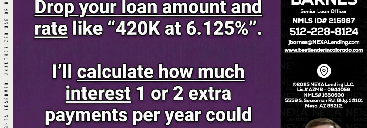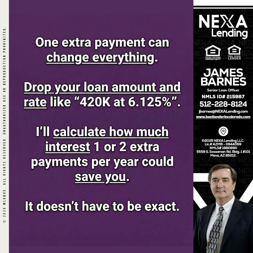 Hi, my name is James Barnes. I’m a Loan Officer with NEXA Lending LLC., offering personalized mortgage solutions, fast customized quotes, great rates and service with integrity.