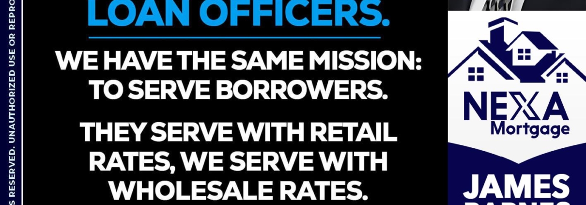 Hi, my name is James Barnes. I’m a Loan Officer with NEXA Mortgage LLC., offering personalized mortgage solutions, fast customized quotes, great rates and service with integrity.