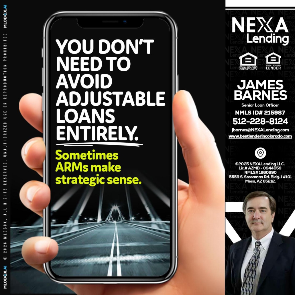 Hi, my name is James Barnes. I’m a Loan Officer with NEXA Lending LLC., offering personalized mortgage solutions, fast customized quotes, great rates and service with integrity.